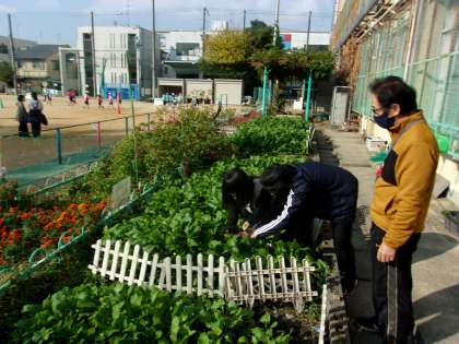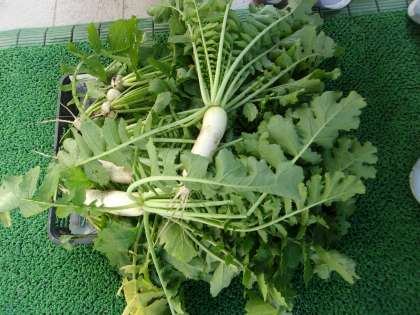 14日(金)、矢車学級では間引きとしてダイコンとカブの収穫をしました。