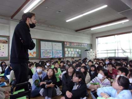 14日(金)、5年生は山の家に向けての学年集会を行い、それぞれの先生から話をしました。