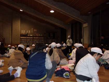 司会の人が進行し、明日に向けて、今日の反省と明日もっと楽しくなるように確認をしました。そのあとは各部屋に戻り、歯磨きをして就寝です。また明日も楽しい一日となりますように。