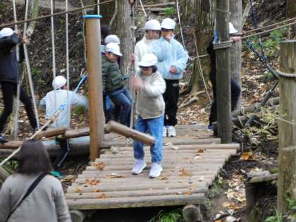 本日最初の活動は、フィールドアスレチックと冒険の森でした。