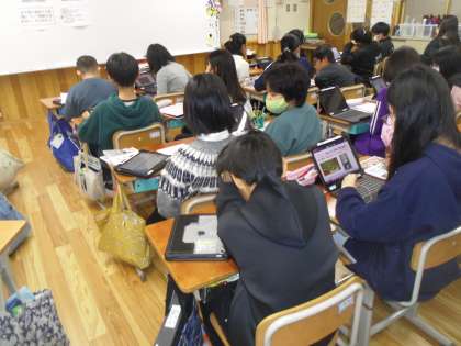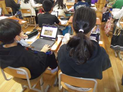 次に各自のタブレットを使って表現の練習をしたりや絶滅危惧種について調べたりしました。