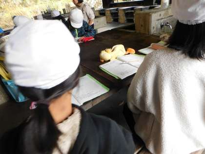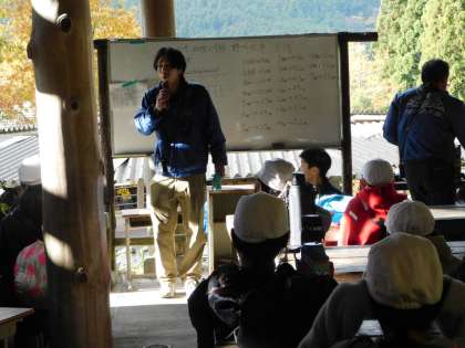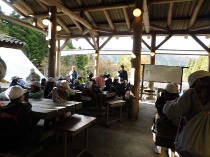 時間があった班は振り返りをし、山の家の方に挨拶をして、野外炊事を終えました。