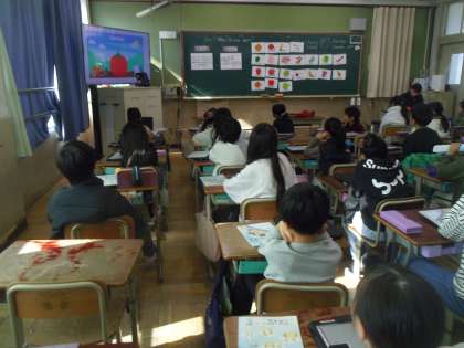 Unit7のの3回目の学習をしました。前半は歌とチャンツで食べ物やほしい物のたずね方に慣れ親しみました。