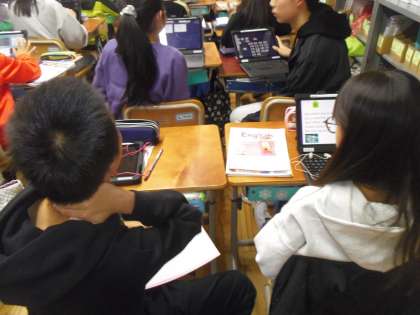 学級閉鎖のため進度が遅れているクラスで学習を実施しました。はじめの歌は歌えるようになってきました。次にLet's Read.で読む学習をしました。最後にペアで絶滅危惧種について伝え合いました。
