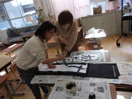 書写では画仙紙に書いたり、図工では彫刻刀で彫ったり刷ったりしました。