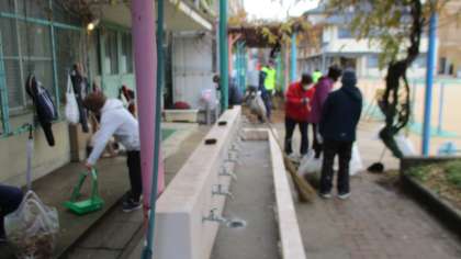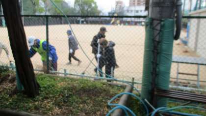 第1グラウンドの清掃活動の様子です。