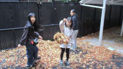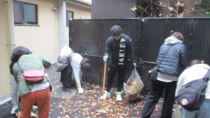 本館南側駐輪場付近の清掃活動の様子です。