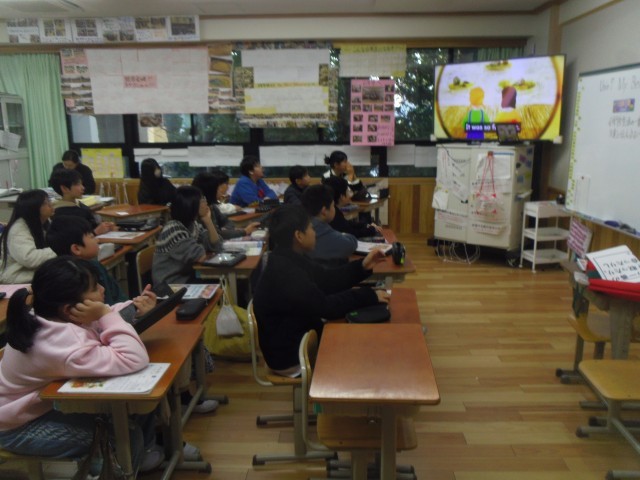 Unit7の3回目の授業をしました。はじめに歌を歌いました。少しずつ歌えるようになってきています。