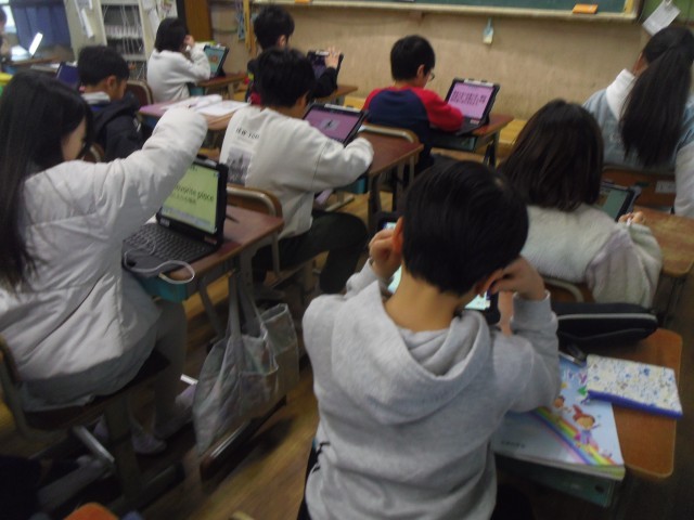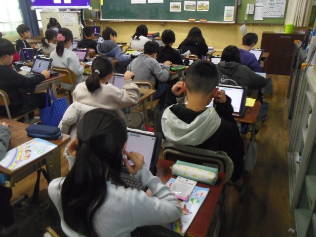 最後に各自のタブレットを使ってロイロノートのカードで道案内の言い方の練習をしました。