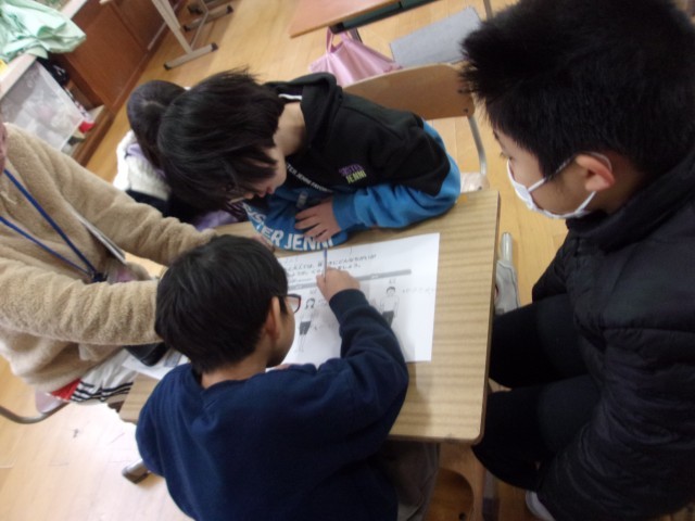 子どもたちは4グループに分かれて、それぞれのグループで考えたことを話し合い、全体で確認しました。子どもたちからは、「男性は筋肉がある、ムキムキ、力がある」「女性は声が高い、胸が大きくなる」などの意見が聞かれました。最後に全体で、「どちらかと言うと、男性はがっちりした体つきになり、女性はまるみがある体つきになる」ということを確認しました。また、「成長が早いから良い、遅いから悪いということはなく、それぞれ個人差がある」ということも確認しました。子どもたちは今回の授業も真剣に考えることができていました。