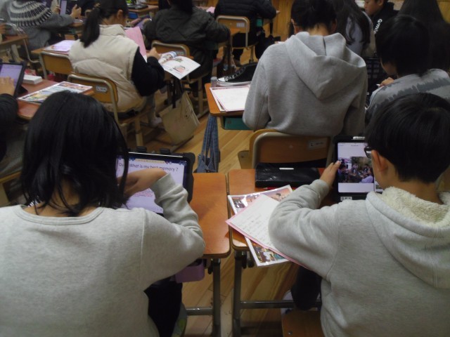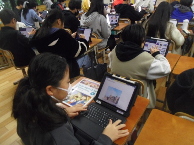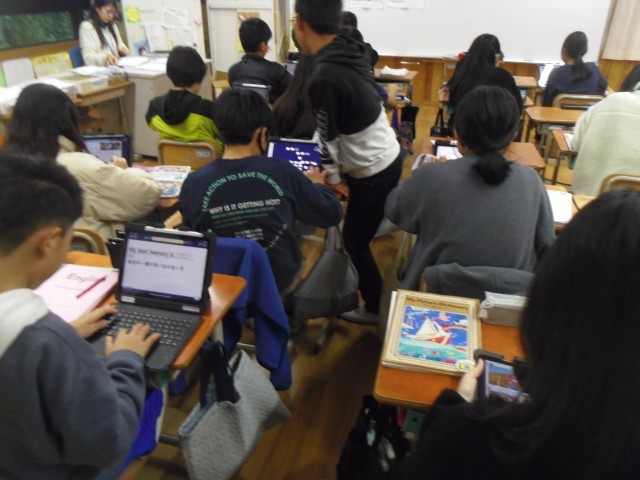 次に各自のタブレットで発表用のカードを作成しました。友達と相談しながら作成している人もいました。2月2日に千葉県道野辺小学校とオンライン交流をします。その時にカードを使って紹介をします。