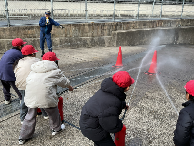 その後、消火器の体験と消防車や服装などについてのお話を聞きました。