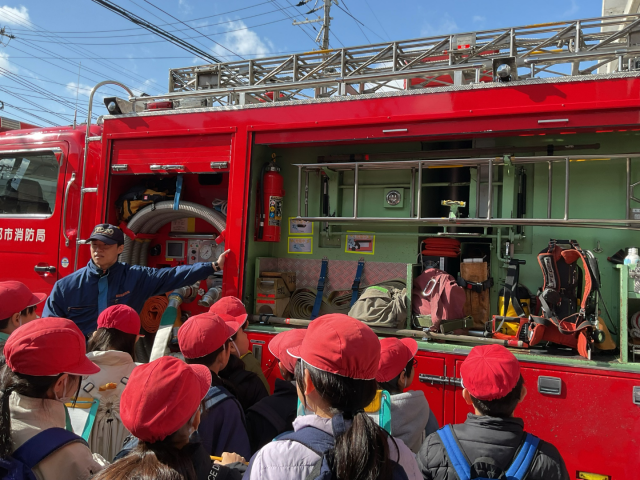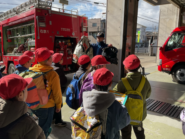 右京消防署の方々から、消防士さんのお仕事の説明を聞きました。