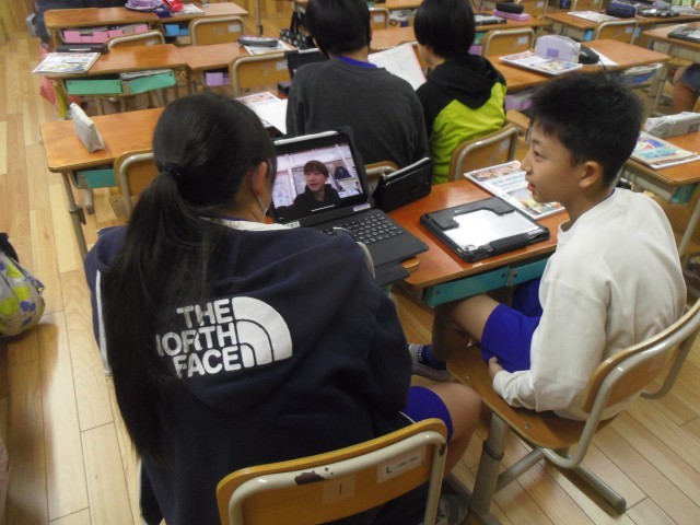 千葉県道野辺小学校とオンライン交流を実施しました。zoomを使って2、3人ずつのグループで小学校での一番の思い出について伝え合いました。
