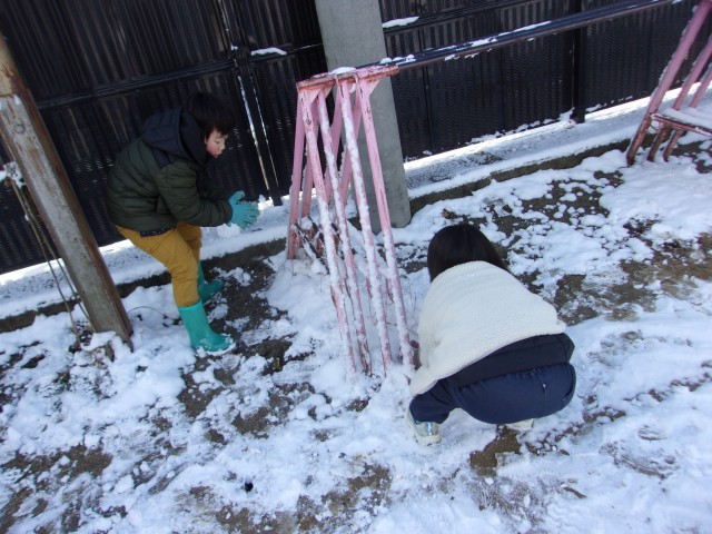 今回も雪が積もっていたので、朝の運動は運動場で行いました。楽しい時間が過ごせました!