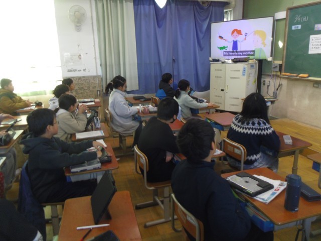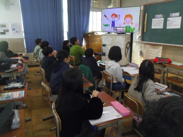 Unit7の2回目の学習を行いました。最初に歌を歌いました。