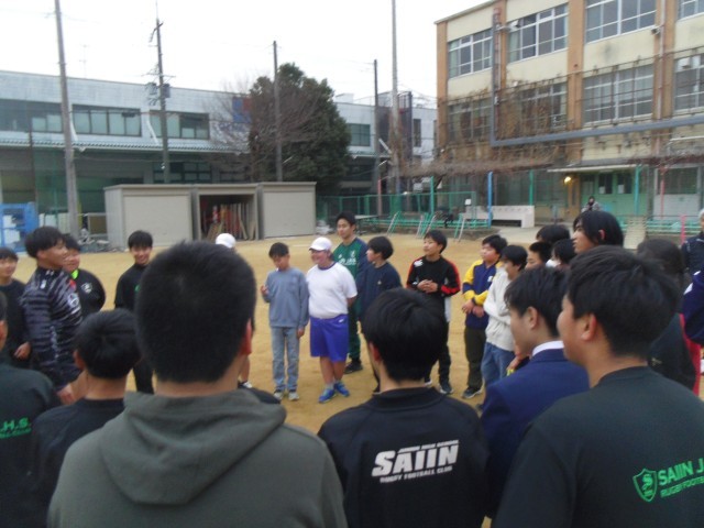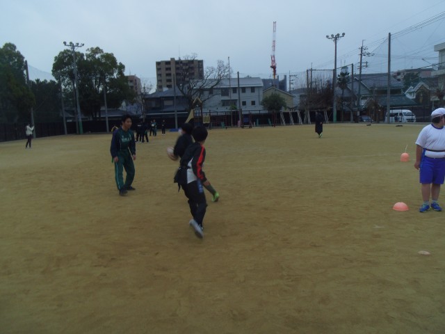 西院中学校のラグビー部員が西院小学校にきて部活体験を実施しました。6年生の希望者が中学生と一緒に楕円球を追掛けました。参加した子どもたちには貴重な部活体験となりました。6年生の子どもたちは4月から西院中学校へ進学してラグビー部で活躍してくれることを願っています。