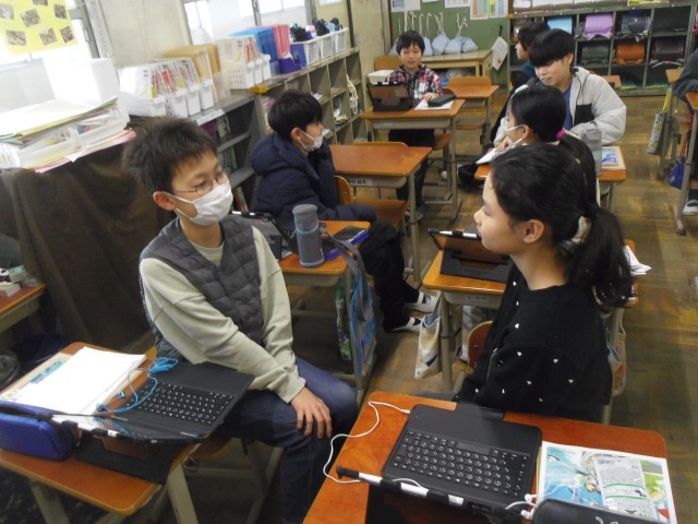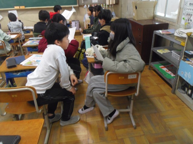 授業の後半にはペアで憧れの人を伝え合いました。はじめはメモを見ていた子どもがだんだんとメモを見ないで話せるようになってきていました。学習の成果が見られます。