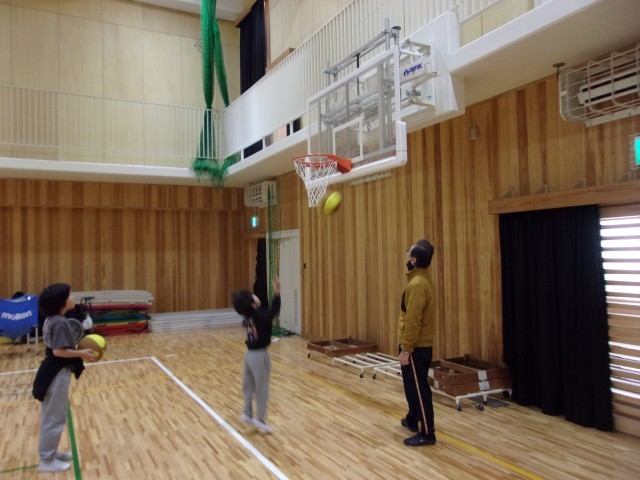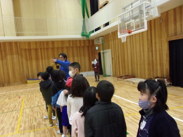 大縄跳び、リレー、バスケットボールのフリースローなど体を動かす学習をしました。