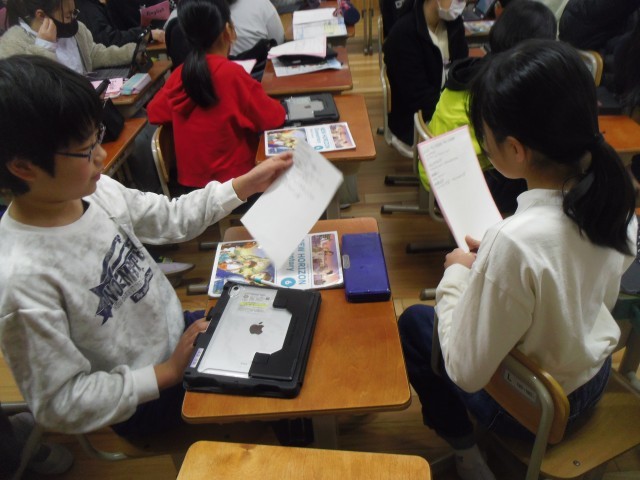 後半にはペアで中学校で入りたい部活動と将来の夢を伝え合いました。