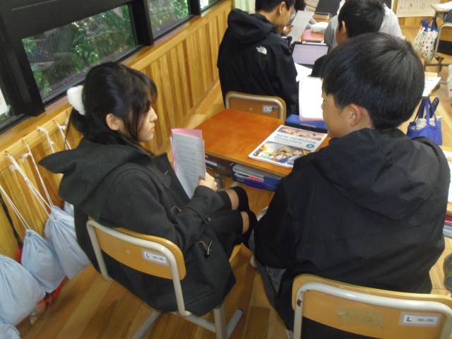 後半にはペアで中学校で入りたい部活動と将来の夢について伝え合いました。