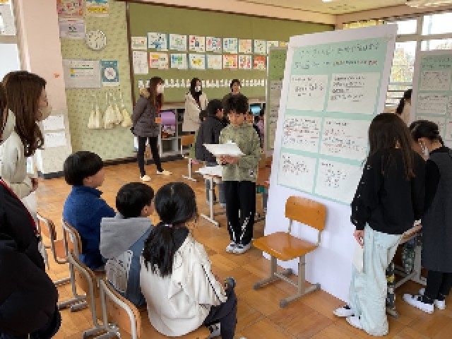 総合的な学習の時間で調べた西院の地域の方々について、まとめたことをポスターで発表しました。