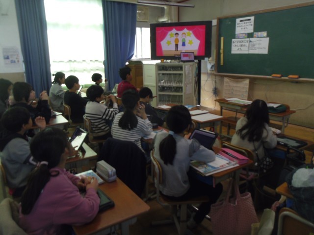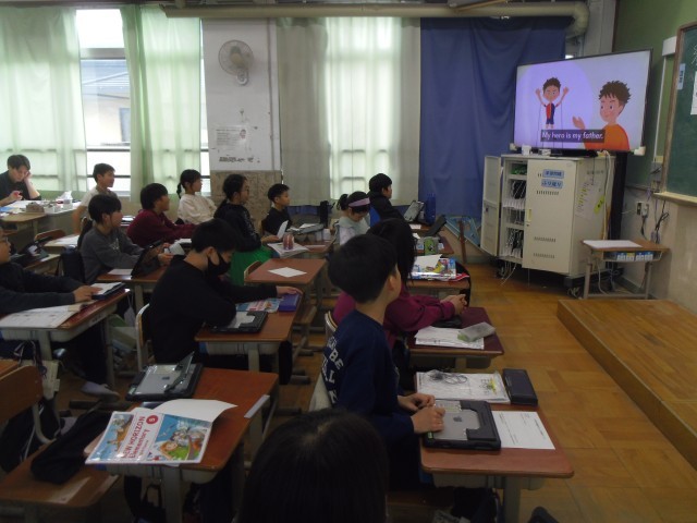 Unit8の6回目の学習をしました。はじめの歌は多くの子どもたちがしっかり歌えるようになってきました。