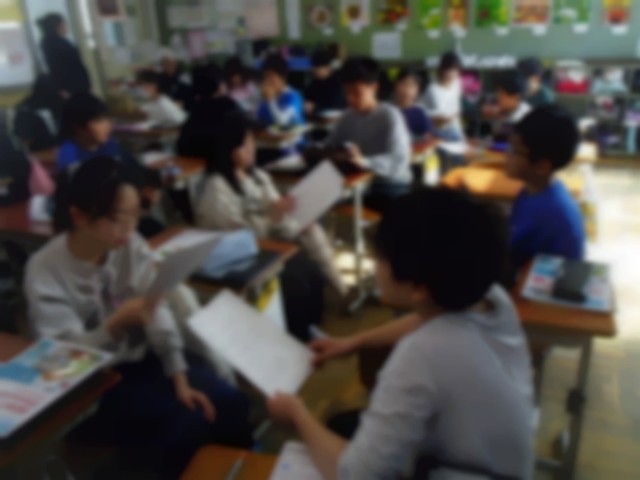 後半にはペアトークで憧れの人を紹介しあいました。「くわしく紹介しよう」をめあてとして紹介しあいました。