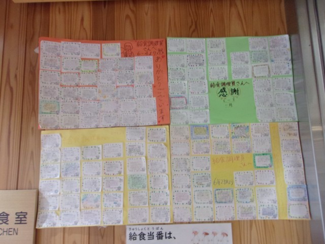 給食週間の取組として、各クラスで普段給食をつくってくださっている給食調理員さんにお手紙を書きました。