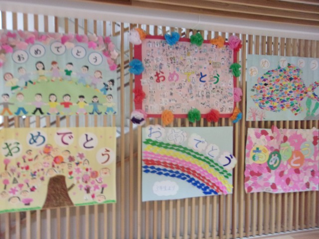 お祝い掲示を1~5年生と矢車学級の子どもたちがつくりました。