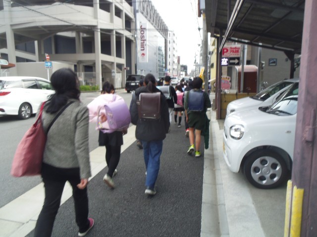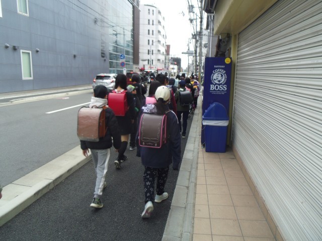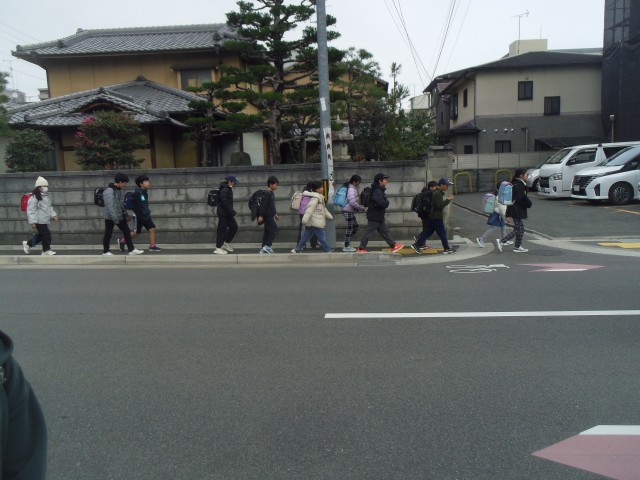 四条春日通りにはいつも見守り隊の方が子どもたちが安全に下校できるように見守っていただいています。ありがとうございます。地域委員の方々も集団下校に参加していただきました。ありがとうございました。