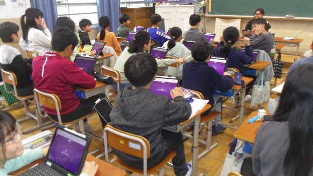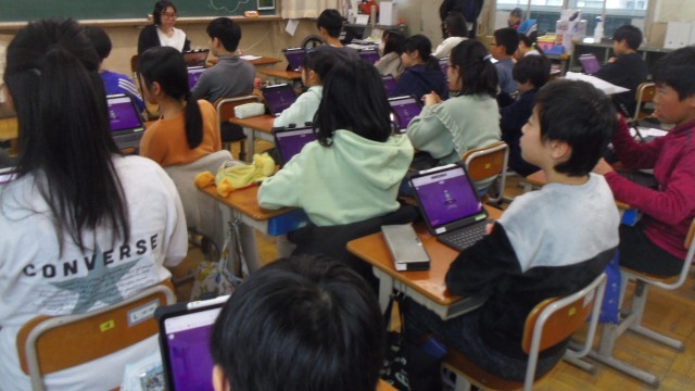 カフートを使ってクイズ大会をおこないました。ALTの先生がクイズを読み上げました。子どもたち復習クイズを楽しみました。