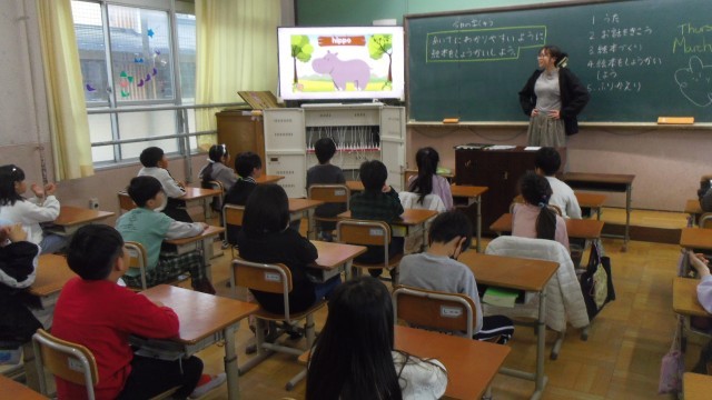 次に歌を歌って色や動物の言い方に慣れ親しみました