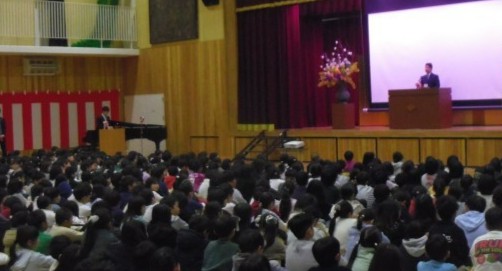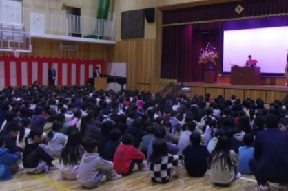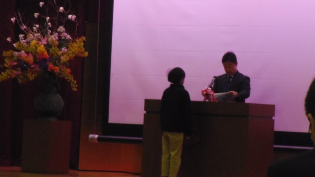 平成7年度修了式を実施しました。5年生代表児童に学校長から修了証を渡しました。