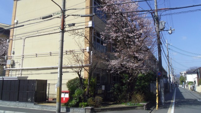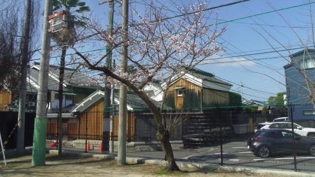 学校の桜が咲き始めています。