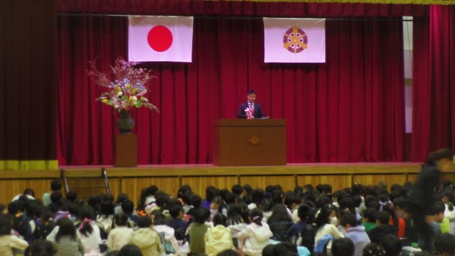 令和8年度1学期の始業式を行いました。校長先生が子どもたちに今年度頑張ってほしいことについて話をしました。