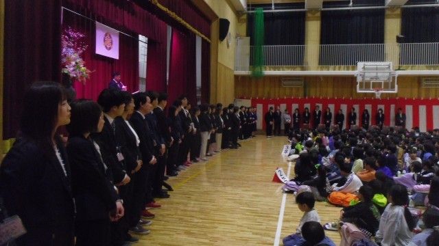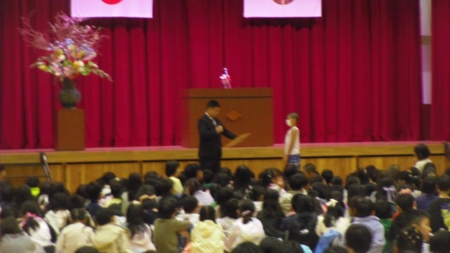始業式に続いて、表彰式、職員の紹介・担任の先生の発表を行いました。