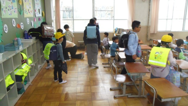 6年生の子どもたちは1年生を教室まで連れて行ってくれました。ランドセルの片づけ等も一緒に手伝ってくれました。