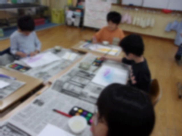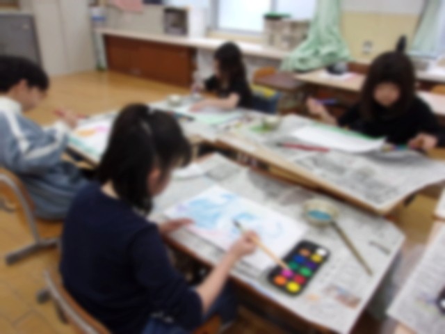 15日(水)、矢車学級では図画工作の学習をしました。14日(火)の春見つけで見つけたものを思い出しながら、今回は春の色をイメージしながら絵の背景を描きました。