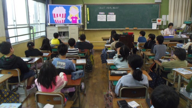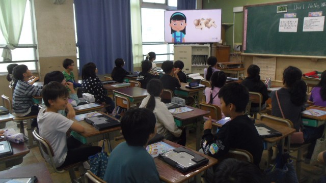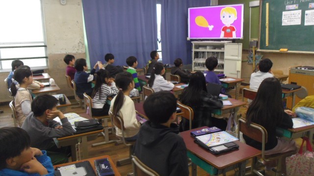 Unit1の2時間目の学習をしています。前半は歌で好きなものを尋ねる表現に慣れ親しみました。