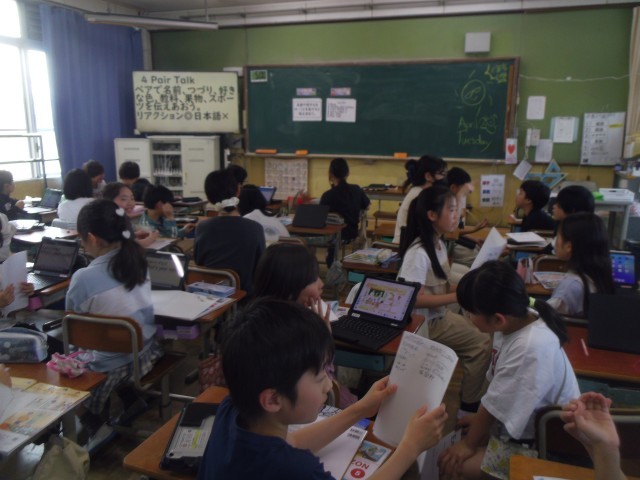 後半にはペアトークで名前、つづり、好きなものを伝え合いました。