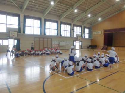 3年生は団体競技で台風の目をします。ルールをきちんと守って,楽しく競技します。本番は,台風の目だけでなく,体育の学習を活かしたいろいろな動きを取り入れます。楽しみにしておいてください。