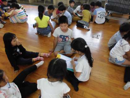金曜日の遠足は2年生と一緒に動物園に行きます。2年生と協力してクイズラリーをする予定です。そこで,今日はグループのお兄さん,お姉さんと顔合わせをしました。天気が心配なのですが,2年生と一緒に動物園に行くことが楽しみです。良い天気になりますように。