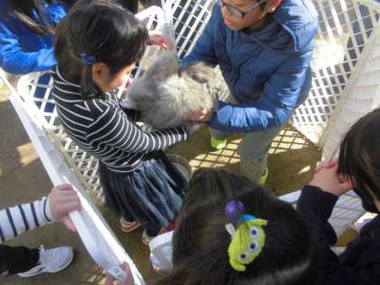 「ふわり」とのふれあいのを,生き物委員会が企画し,実行しています。「かわいい!」「ふわふわー。」といった声が聞こえていました。生き物を大切にする心が育ってほしいと思います。