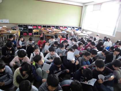 第1回目の本日は,校長先生にも励ましの言葉をいただきました。学習ハンドブックを配ると,一生懸命に読み込んでいました。