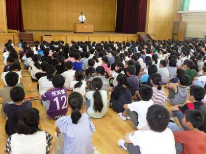 始業式では,校長先生から夏休みの振り返りと2学期からの過ごし方についてのお話がありました。まだまだ,暑い日が続きますが,いろいろな面で成長し,活躍してほしいと思います。