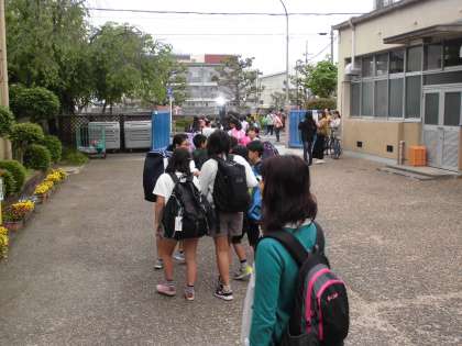 修学旅行が始まりました。6年生は,全員予定通り中庭に集合し,児童代表の司会で出発式が行われました。今日は,広島市の平和記念公園,原爆資料館,宮島を訪問します。