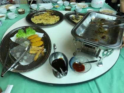教職員のテーブルの夕食の献立を写してみました。子どもたちのテーブルとまったく同じ内容です。確かにおいしそうです。