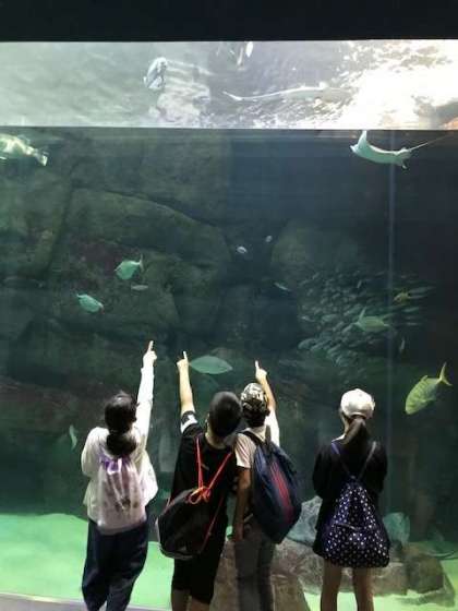 次は,宮島水族館を見学しました。中国地方有数の水族館である宮島水族館は,厳島神社のすぐ近くにあります。瀬戸内海の魚を中心に,海の生き物を鑑賞ができます。