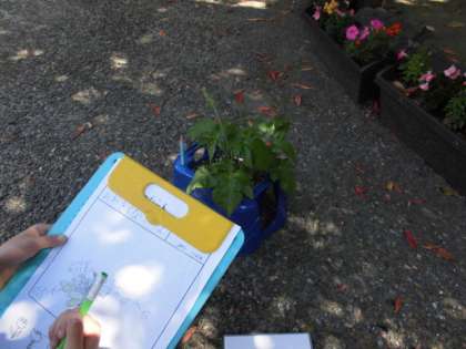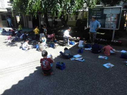1年生では,生活科で朝顔を育て,世話の仕方や観察の仕方などを学んでいます。1時間目には,その朝顔の観察をしました。